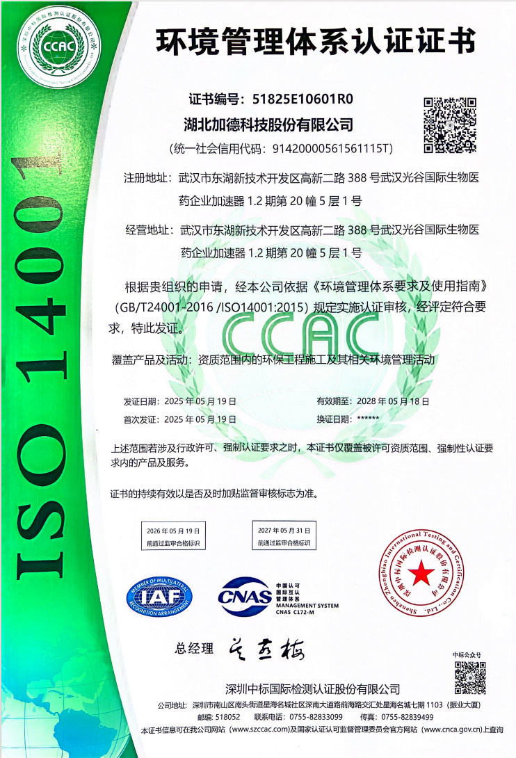 “武漢經(jīng)濟(jì)技術(shù)開(kāi)發(fā)區(qū)黃陵污水處廠二期擴(kuò)建工程生物倍增@工藝包項(xiàng)目”認(rèn)證證...