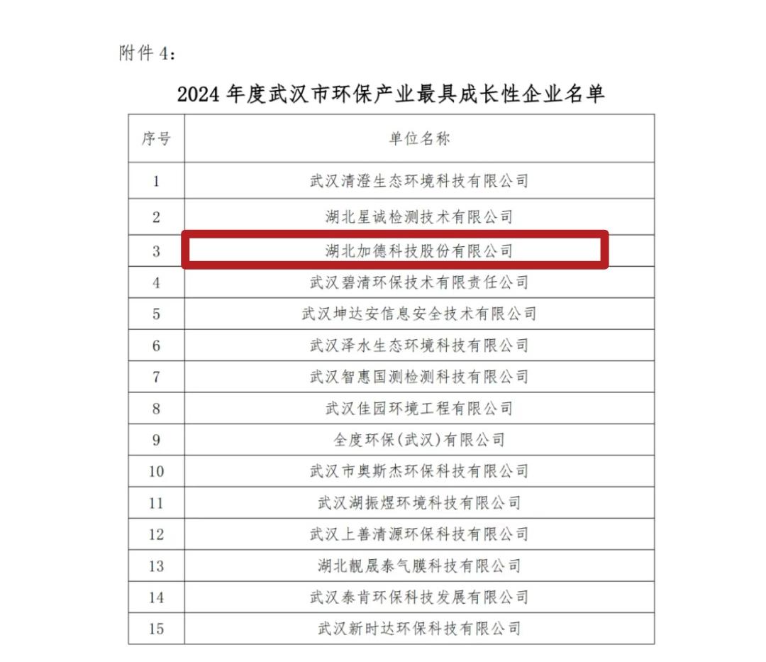 2025年4月14日,武漢環(huán)境保護(hù)產(chǎn)業(yè)協(xié)會(huì)公布“2024年度武漢市環(huán)保產(chǎn)業(yè)百?gòu)?qiáng)企業(yè)”名單。加德科技憑借扎實(shí)的綜合實(shí)力及顯著的創(chuàng)新能力成功入選,榮獲“2024年度武漢市環(huán)保產(chǎn)業(yè)最具成長(zhǎng)性企業(yè)”,這一權(quán)威認(rèn)證不僅是對(duì)加德科技綜合實(shí)力和行業(yè)領(lǐng)域的充分肯定,也為企業(yè)的未來發(fā)展注入了強(qiáng)勁動(dòng)能!